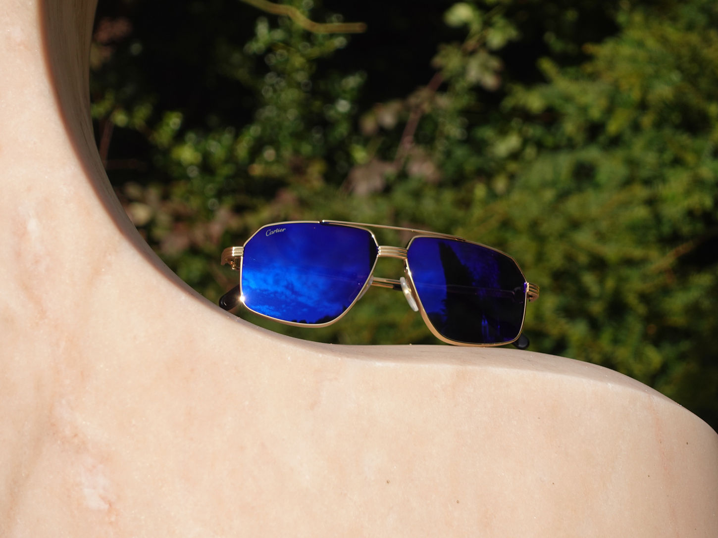 Every piece of metal you see on a Cartier frame will be finished in either Gold, White Gold or Platinum, plated to twice the thickness of the industry standard.