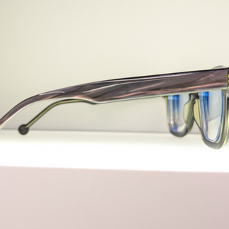 What sets this frame apart is its ability to command attention while remaining incredibly wearable. The combination of its bold yet refined shape, versatile color palette, and artistic craftsmanship makes it a standout in any eyewear collection. Its subtle translucency catches the light beautifully, adding dimension and depth to the design. The signature l.a.Eyeworks temple detailing further enhances its exclusivity, making it a perfect fusion of art and function.